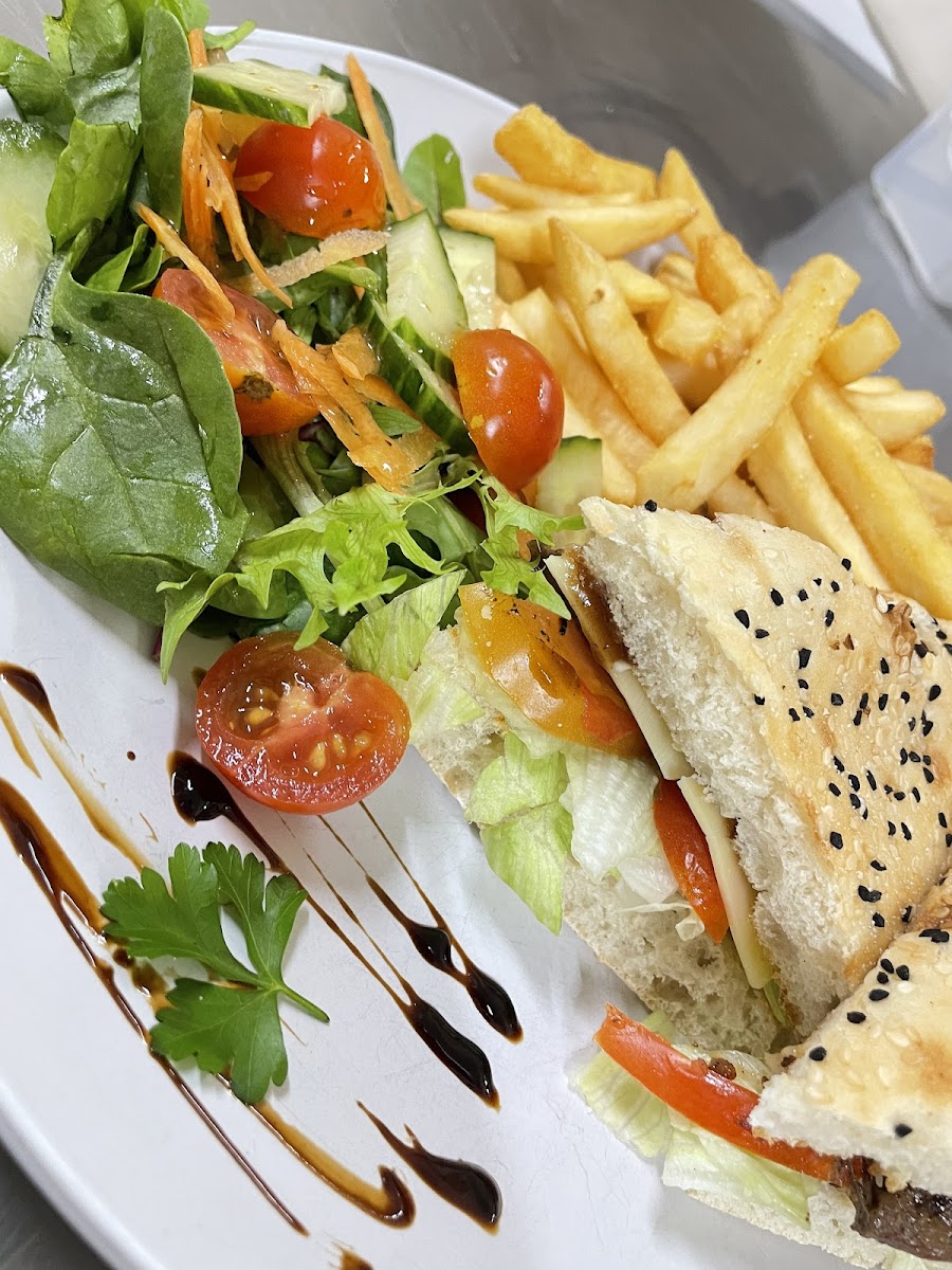 Breakfast options include classic dishes such as the Big Breakfast, featuring bacon, sausage, egg, hashbrown, mushroom, tomato, and baked beans served on toast. Lighter choices are available as well, such as Smashed Avocado on Turkish bread with feta and cherry tomatoes, Eggs prepared your way, Eggs Benedict with a choice of bacon or ham, and Bacon & Egg Wraps.